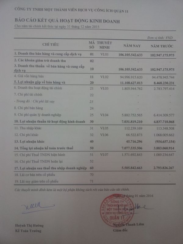 Báo cáo Kết quả hoạt động kinh doanh năm 2015.